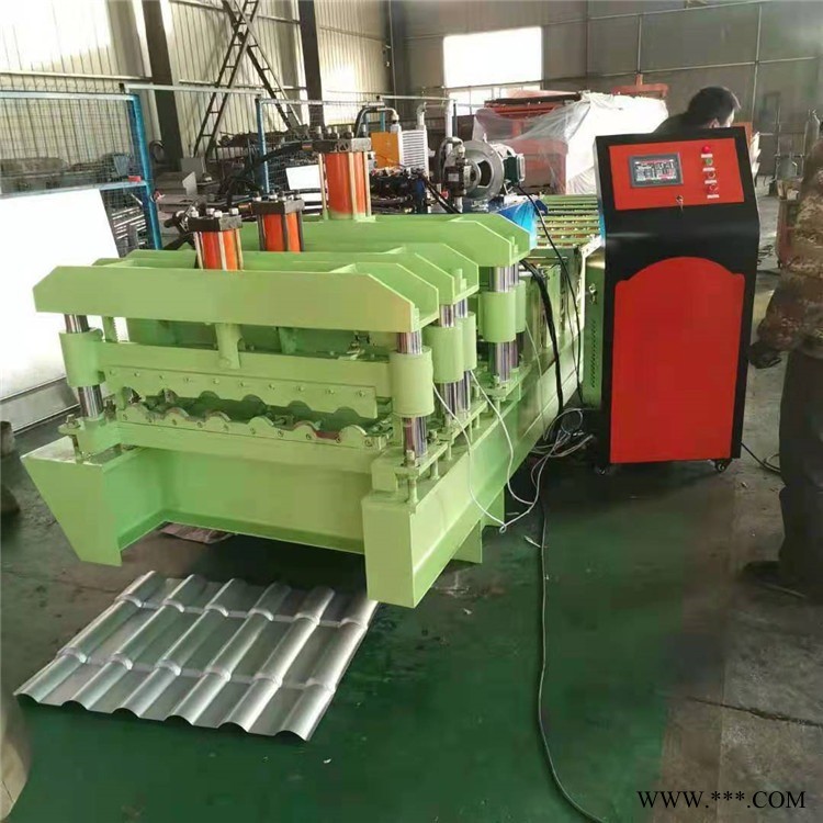 8、 工作速度:10-18m/min 壓型鋼板型號 24-210-840 有效覆蓋寬度(mm) 840 展開寬度(mm) 1000彩鋼瓦成型機由放料、成型、后成型切割組成。