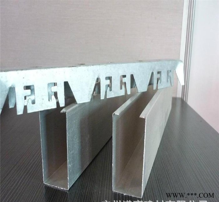 3、把預(yù)裝在三角龍骨上的吊件連同三角龍骨與輕鋼龍骨成垂直方向按板材間距連接好,然后調(diào)整水平