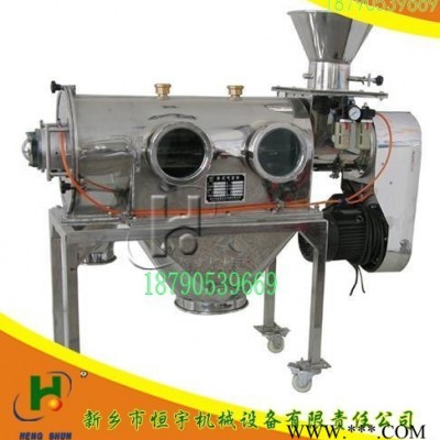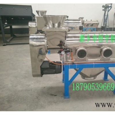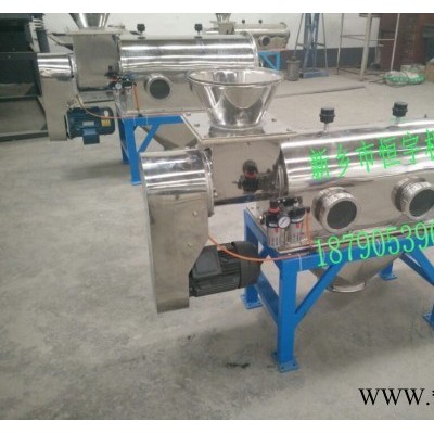 圓筒臥式氣流篩,恒宇氣流篩,采用圓筒式,進料口采用高速旋轉的螺旋葉片,適宜篩分易漂浮,比重輕的精細粉體,受離心力和旋風推進力,利用氣流的強勁推進力,使微粉粒通過氣流透過篩網。由于強大氣流沖擊,使粉體不易堵塞篩網,產量大,效率高。篩分細粉從下面的出料口排出,粗料從氣流篩尾部出料口排出。臥式氣流篩是一款對微細粉進行有網篩分的高精度篩分設備。80-500目內的粉狀物料很好的連續篩分,利用粉料微粒質量小而輕、易漂浮、流動性好的特點,將其充分擴散到氣流中,粉料不再團聚,而是以單個微粒依次隨氣流透過篩網,因此氣流篩的產量大、效率高、不粘網、不堵網孔、細度**。