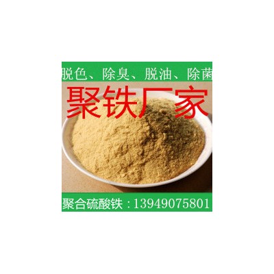 聚合硫酸鐵按狀態分為液體和固體兩種,液體是均相紅褐色粘稠透明液體,比重≥1.45g/cm3,粘度(20℃)>10厘泊。固體是淡黃色無定型粉狀固體,有較強的吸濕性。聚合硫酸鐵是一種新型高效無機高分子混凝劑,無毒無害,化學性質穩定,能與水混溶,在水處理過程中,聚合硫酸鐵能很快形成大量的[Fe2(OH)3]3+,[Fe2(OH)2]4+,[Fe8(OH)20]4+等多核絡離子,極易生成絮體,凝聚性能較好。而且耗量少、降速度快、PH適用范圍寬、水中殘留鐵離子少、水解產物脫水性能優良,重金屬的去除率高,出水質量優良,處理成本低。優于聚合氯化鋁、硫酸鋁、三氯化鐵等其他混凝劑。