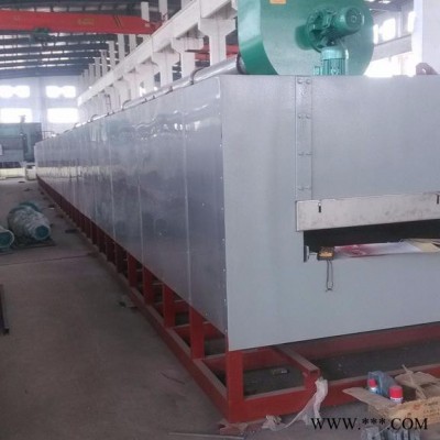 爐襯采用全纖維結構,相對磚式爐膛節能60%左右,采用**長纖維刺毯為原料,根據爐膛大小使用專用設備制成大板塊的規格,并在加工過程留有一定的壓縮量,以保證模塊在砌筑完畢后,每塊陶瓷纖維塊在不同方向膨脹,使模塊之間互擠成無間隙的整體,達到完好蓄熱效果,而且該產品施工方便快速,均能直接固定于爐殼鋼板的不銹鋼錨圓釘上。與其它產品相比優點為低導熱,低熱容量,優良的抗腐蝕性能,優良的熱穩定性及熱抗震性、絕熱性,并且錨固件設置于爐體冷面,提高了纖維的耐高溫強度。 加熱元件采用高溫電阻合金絲繞制成帶狀和螺旋狀,分別吊掛在爐側、爐門、后墻及安放臺車擱絲磚上,并用高鋁瓷釘固定,安全簡潔。 臺車上安裝有耐壓抗高溫的鑄鋼爐底板,以承載工件之用。為了防止工件加熱后產生的氧化皮通過爐底板間的縫隙落入加熱元件周圍而造成加熱元件損壞,因此爐底板與爐體接觸處采用插入式接觸。為保證正常使用,需要經常吹掃臺車爐底板下方的氧化皮,一般每周吹掃一次,吹掃時將爐底板吊起,用壓縮空氣將電阻絲槽內的氧化皮屑吹掃干凈,注意防止氧化皮卡在爐絲內引起短路。 爐門裝置由爐門、爐門提升機構和爐門壓緊裝置組成。爐門殼體由型鋼與板材焊接而成牢固框架結構,內用耐火纖維壓制模塊疊鋪而成,要求保溫性能好,重量輕等。爐門的提升裝置采用電動裝置,主要由爐門架、爐門提升橫梁、減速器、鏈輪、傳動軸和軸承等部分組成,爐門升降通過減速器上正反傳動來帶動爐門的升降。爐門提升減速器還配有剎車裝置,可以有效防止爐門在升降過程中產生位移。爐門壓緊裝置采用國內先進的彈簧式壓緊結構,當爐子需要提升時,爐門的自重通過杠桿將爐門自動松開,并水平移出一段距離后上升,當爐門下降到位,爐門放下到臺車上的滑輪上面需壓緊時,由彈簧的彈力再通過杠桿將爐門水平移進到壓緊密封狀態,此種結構的壓緊裝置使爐門上的纖維平面與爐口棉之間無摩擦產生,具有安全性能好、使用使命長的特點。 臺車框架采用型鋼焊接成形,其鋼性保證在滿負荷下不變形。內用耐火磚砌筑,易碰撞部位和承重部位用重質磚砌筑,增強爐襯結構強度,臺車的行走采用自行式結構,由減速機傳動鏈輪帶動走輪在軌道上行走。臺車密封采用自動迷宮式結構和軟接觸雙密封,臺車進入爐內通過凸輪及滾輪斜面作用,自動升起后進行密封。臺車開出,該密封槽自動落下,密封槽內密封砂經加滿后即不必經常添加。臺車開出,爐門升降均為電動控制,配有電磁制動器,可防止慣性撞擊爐體,并且連鎖控制,即稍打開爐門后,自動切斷加熱元件,同時恢復臺車行走機構電源。爐門關閉到位后,自動切斷臺車行走機構電源,同時恢復加熱元件電源。。 為了縮短冷卻工藝時間,臺車式電阻爐爐頂可設有加快冷卻用排氣裝置。該裝置加熱時關閉,冷卻到一定溫度打開、關閉打開操作由操作人員在爐子一側通過手動機構或自動控制來完成。 臺車式電阻爐是**標準節能型周期式作業爐,主要用于高鉻、高錳鋼鑄件、球墨鑄鐵、軋輥、鋼球、?破碎機錘頭、耐磨襯板淬火、退火、時效以及各種機械零件熱處理之用