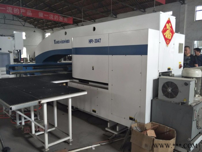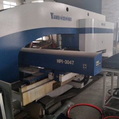 出售轉讓二手亞威數控轉塔沖床HPI3047、數控沖床,江蘇亞威產,型號:HPI3048,油壓伺服式,沖壓能力:30噸,36工位,2旋轉工位, 加工尺寸:1500*4000MM,2015年8月產 ,成色:9.9新, 該機為油壓伺服式沖床,更快,更省電,購入后安裝少用,平時打打樣品,幾乎是新機。已調試完畢,保證精度,可現場試機,我公司免費安裝、調試、培訓,保修三個月,贈送編程軟件,24小時技術支持,終身配件供應,機會難得,預購從速。廊坊靜德數控設備有限公司 聯系人:田永強13785632893可加微信 本公司另有多臺國內外數控轉塔沖床、數控沖床、數控折彎機、激光切割機出售,歡迎選購!