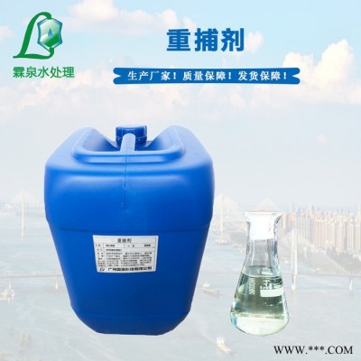 重捕劑是一種重金屬離子強(qiáng)力螯合的化工藥劑,因能在常溫和很寬的PH條件范圍內(nèi),與廢水中的Hg 2+ 、 Cd 2+ 、 Cu 2+ 、 Pb 2+ 、 Mn 2+ 、 Ni 2+ 、 Zn 2+ 、 Cr 3+ 、 Cr 6+等各種重金屬離子進(jìn)行化學(xué)反應(yīng),并在短時間內(nèi)訊速生成不溶性、低含水量、容易過濾去除的絮狀沉淀,從而達(dá)到從水中去除重金屬離子的化學(xué)品被稱為重捕劑。