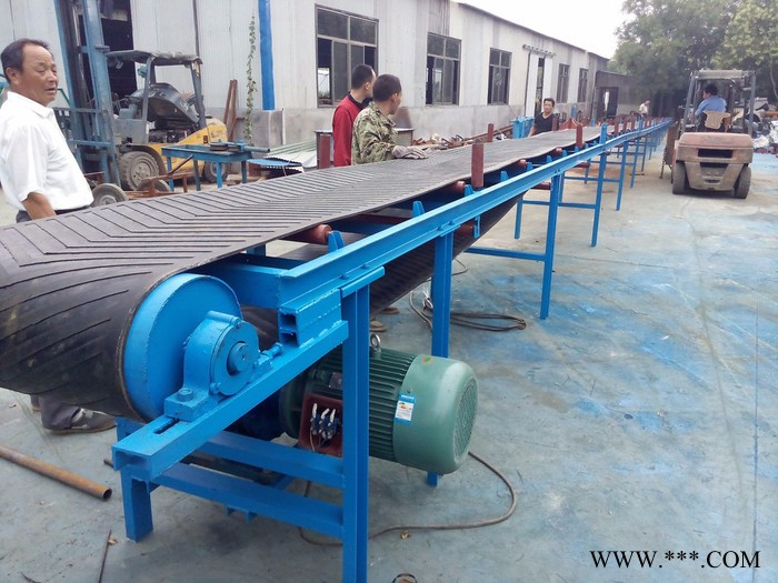 膠帶輸送機(jī)又稱皮帶輸送機(jī),輸送帶根據(jù)摩擦傳動(dòng)原理而運(yùn)動(dòng),適用于輸送堆積密度小于1.67/噸/立方米,易于掏取的粉狀、粒狀、小塊狀的低磨琢性物料及袋裝物料,如煤、碎石、砂、水泥、化肥、糧食等。膠帶輸送機(jī)可在環(huán)境溫度-20℃至+40℃范圍內(nèi)使用,被送物料溫度小于60℃。其機(jī)長及裝配形式可根據(jù)用戶要求確定,傳動(dòng)可用電滾筒,也可用帶驅(qū)動(dòng)架的驅(qū)動(dòng)裝置。