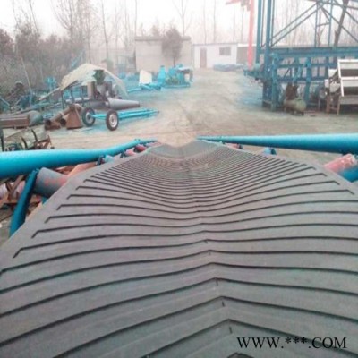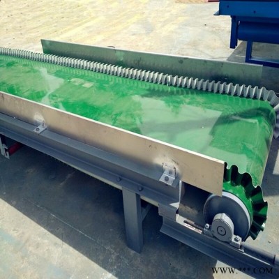大傾角皮帶輸送機(擋邊帶式輸送機)其結構是在平形橡膠運輸帶兩側粘上可自由伸縮的橡膠波形立式“裙邊”,在裙邊之間又粘有一定強度和彈性的橫隔板組成匣形斗,使物料在斗中進行連續輸送。大傾角皮帶輸送機(擋邊帶式輸送機)糧食、建材、化工、水電和冶金等部門,在環境溫度為-19℃~+40℃范圍內,輸送堆積比重為0.5-2.5t/m3的各種散狀物料。對于輸送有特殊要求的物料,如高溫、具有酸、堿性、油類物質或有機溶劑等成分的物料,需采用特殊的擋邊輸送帶。