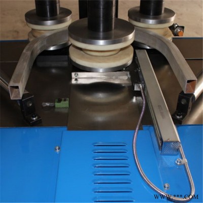 設(shè)備帶有3個(gè)驅(qū)動(dòng)滾輪 **大液壓力可達(dá)25噸,能輕松彎曲各種鋁型材及門窗附框(矩形鋼管)。