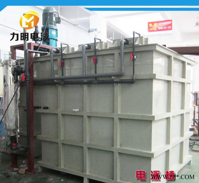 電泳槽分為主槽和副槽。主槽槽體設(shè)計(jì)時(shí)要求工件離槽底、極板、液面的距離一般要求大于20厘米,給槽底、槽壁的循環(huán)噴管、以及陽極管(或陽極箱)留出安裝位置。槽底與槽壁立面的過渡要做成弧形,防止產(chǎn)生循環(huán)死角。副槽槽底設(shè)計(jì)成到金字塔型,副槽中放置不銹鋼盤管用于換熱,但是外接的管路一定要用塑料管路。主要配件的介紹如下:1、槽體構(gòu)造:純PP板制作。PP板是制作電泳槽板材的**優(yōu)選擇,其韌性好、耐酸堿、表面光滑、國標(biāo)厚度、溫度可承受80℃。