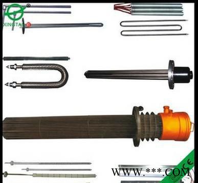 法蘭電熱管:是采用U型管狀電熱元件,依據加熱不同介質設計規范,按照功率配置要求裝配在法蘭蓋上,插入需加熱物料中,發熱元件工作時所發出的大量熱量傳導給被加熱介質使介質溫度升高,達到所需的工藝要求。當介質溫度達到工藝要求的設定值時,控制系統根據溫度傳感器信號,經PID運算后調節電加熱器輸出功率,對發熱元件的電阻性負載實現溫度控制。使介質溫度均勻,達到所需要求;當發熱元件超溫或低液位時,發熱元件的聯鎖保護裝置立即切斷加熱電源避免發熱元件燒壞,延長使用壽命。