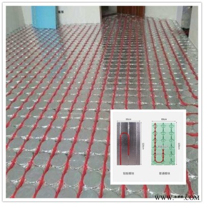 地暖模塊,是預(yù)制溝槽干式地暖模塊的簡稱,利用保溫板溝槽固定保護發(fā)熱管并能均熱的集成地暖板塊,是地暖系統(tǒng)重要的均熱輻射末端。用于取代傳統(tǒng)地暖系統(tǒng)中的保溫板、反射膜、卡釘?shù)容o材,不需要水泥回填可直接鋪地磚或地板,地暖模塊可大幅簡化的地暖安裝程序,并降低地暖厚度,減少向下傳熱損失,讓地暖更節(jié)能。