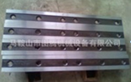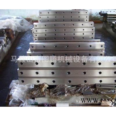 三:合金工具鋼的剪板機刀片材料有:4Cr5MoSiV1(H13K)、7Cr7Mo2V2Si9(LD)、W6Mo5Cr4V2 (6542)等。此種材料的刀片用于熱軋鋼坯,熱剪切中、厚鋼板等,此特點是抗高溫,不易退火,用天鋼廠的熱軋,熱剪切工藝。