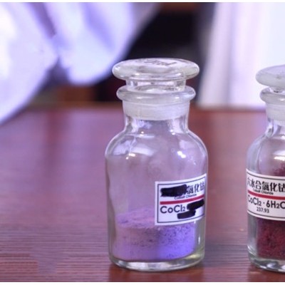 化鈷是一種無機物,化學式CoCl2。為粉紅色至紅色結(jié)晶,無水物為藍色。微有潮解性,易溶于水、乙醇、、丙酮和甘油。用于分析試劑,濕度和水分的指示劑,氨吸收劑。易潮解。熔點724℃