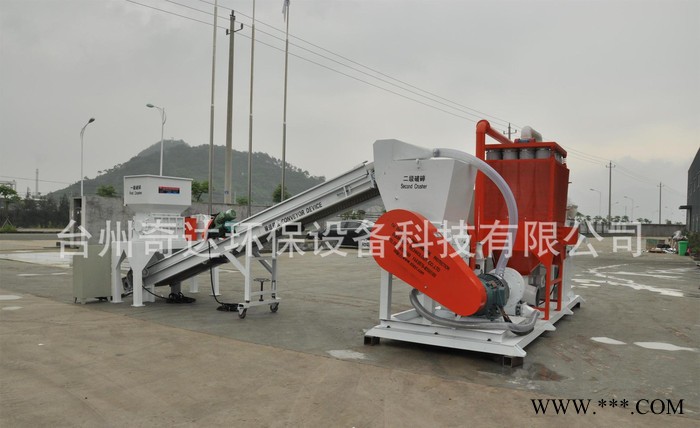 是干式分離廢舊電線電纜的生產線。例如:舊汽車電路線,通訊電纜線,以及剝線機不適合加工(各種民用電線)廢舊雜料電線.毛絲細線等.此機的特點是大小線不用分類可以同時破碎分離,結構新型、獨特,生產量大,耗電少。分選率高,一次投料,多機協作完成。全線由PLC控制。該機的開發成功,即解決了焚燒取銅方法中出現的問題,又能提高回收銅的質量,并可將塑料回收利用,同時解決環境的污染。