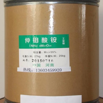 主要用于: 鉬酸銨廣泛用作生產高純度鉬制品的基本原料。主要用于檢測磷的含量、電鍍、磷化液、植物肥料;冶煉鉬鐵和制取三氧化鉬、金屬鉬粉作為鎢鉬合金、鉬絲的原料冶煉鉬鐵和制取三氧化鉬、鉬絲的原料,其次是用于作化工的催化劑,用于農用鉬肥;石油鈷、緩蝕劑,鉬催化劑,顏料化工以及微量肥料中鉬元素的補充,也可用于陶瓷產品,耐火材料添加劑;為多種酶的組成部分。