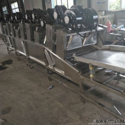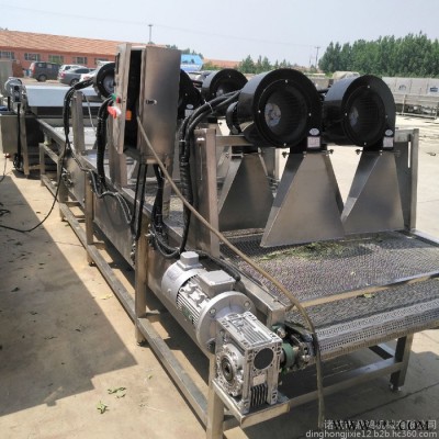 供應風干機 鏈板式風干機 蔬菜脫水設備整體為不銹鋼304材質制作,網帶為翻轉式,物料在行進過程中會不斷地翻轉,使風機的強流風均勻的吹拂食品。設備分段設計,前段為常溫風翻轉風干,后端為大風量軸流風機,有效地提高了風量壓力,使物料表面的水分在短時間內吹走或蒸發,便于儲藏或深加工。