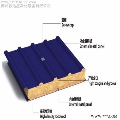 彩鋼巖棉夾芯板材料適用:
