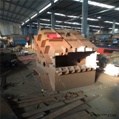 廢鋼破碎機是用于對廢舊進行進行粉碎處理的專業設備,主要用于處理各類報廢汽車、自行車、摩托車、彩鋼瓦、鐵皮、油漆桶等廢舊金屬,該機通過主軸轉子選裝帶動錘頭擊打完成對廢舊進行的破碎作業,將以上廢舊金屬破碎成顆粒狀金屬顆粒以便于廢舊進行的長距離運輸和冶金。廢鋼破碎機在設備構造上主機殼體采用用特厚鋼板制造,內襯為高錳鑄鋼件以起到保護外機體的作用,在主機轉子部位該機采用盤式緊固旋轉機構,在轉子上有若干個鋼盤安裝于水平軸上(鋼盤數量及直徑依據型號),鋼盤圓周分布有6根銷軸,軸向懸有若干個錘頭用于對物料進行擊打破碎,主軸用滾珠軸承支承,循環油強制潤滑冷卻,并裝有溫度傳感器以保證設備高速穩定運行,通過以上機殼與主軸的配合來完成廢鋼的破碎作業,對于大型廢鋼構件來說我公司通過自主研發配套的強制剪短擠壓裝置可有效的為廢鋼破碎機前期破碎提供輔助,以提高廢鋼破碎機的工作效果。